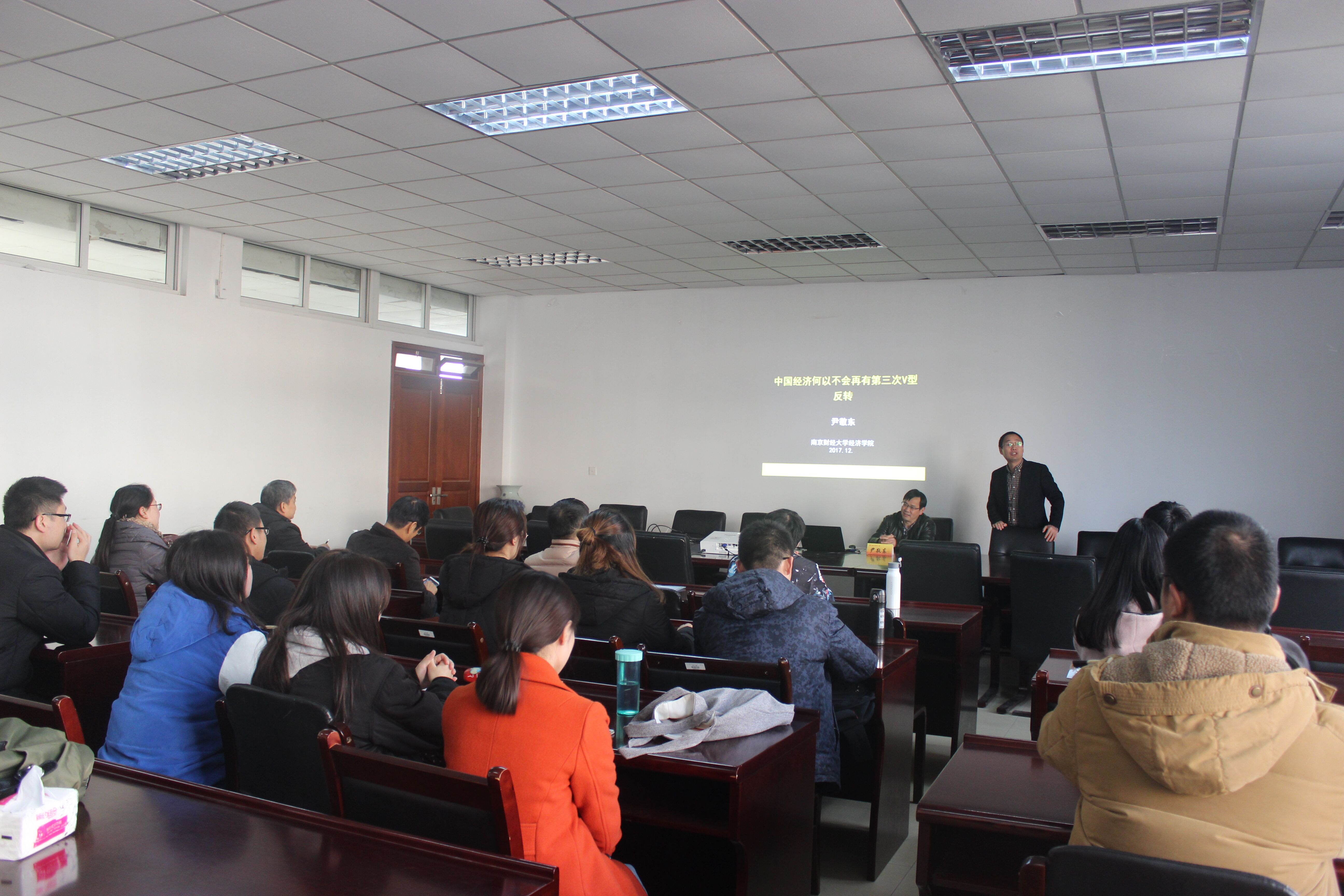 12月11日下午,万象城官网“收入分配与经济增长”学术论坛第19次报告会在德经楼307室举行。报告由万象城官网副院长尹敬东教授主讲,报告题目为“中国经济何以不会再有第三次V型反转”。本次讨论会由万象城官网副院长叶林祥教授主持。