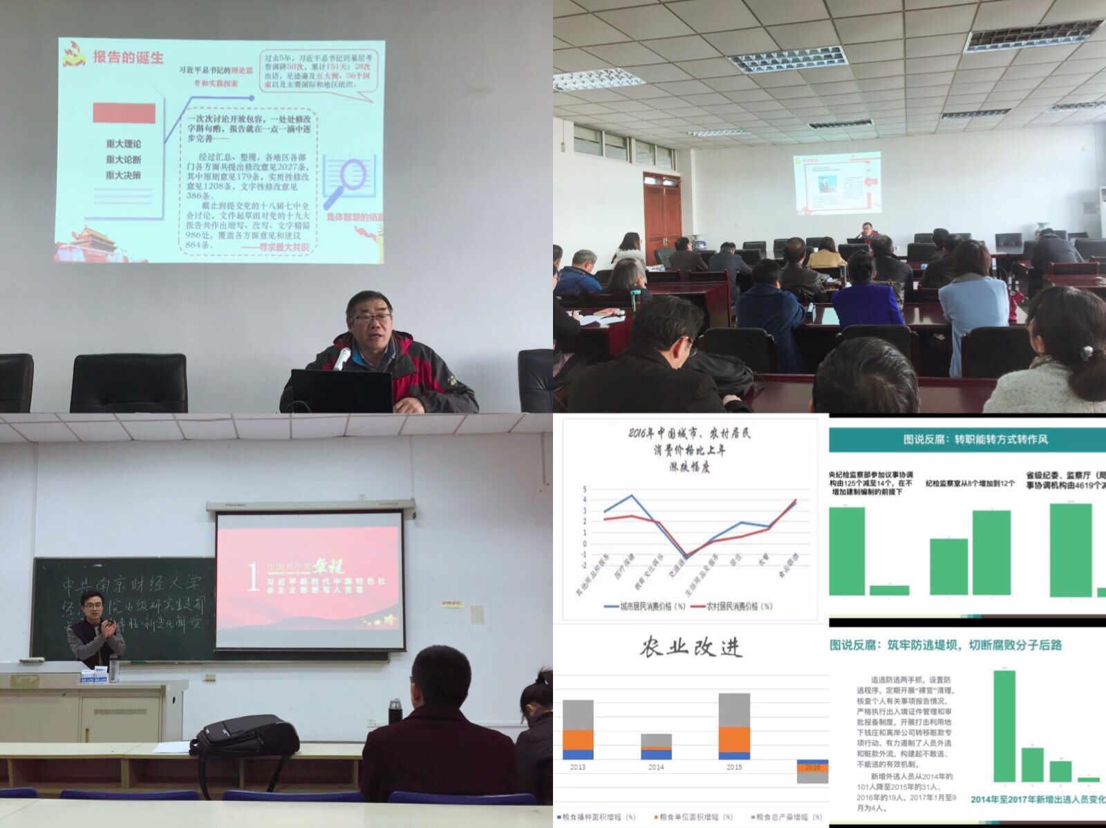 11月22日下午,万象城官网在德经楼307会议室组织全体教工共同学习党的十九大报告,党委书记陈耀辉以“聚焦党的十九大,深刻理解和把握十九大报告的精髓和要义”为主题,分析总结了十九大报告在政治、思想、理论、实践、世界历史五个方面的意义和地位。他围绕十九大报告的主线,将报告分为七大板块进行逻辑结构解读,并指出十九大报告的重点最终是聚焦到“定位、定标、定向、定法”上来。与会教师表示,通过此次学习,进一步明晰十九大报告的主题和意义,同时进一步明确十九大提出的新时代新思想指引下的工作部署和任务要求。