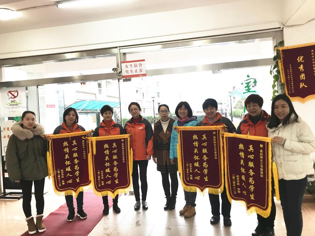 “真心服务为学生,热情关怀暖人心”“关爱学生无微不至,服务公寓一丝不苟”及“尽职尽责排忧解难,关爱学生无微不至”等锦旗上话语,真诚道出学院和学生对宿管阿姨的感恩之心,感谢她们的辛苦付出以及对工作的认真负责。