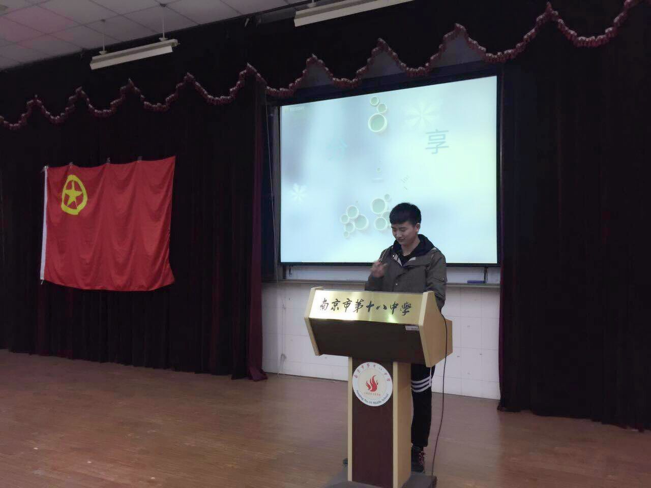 大学是学习生涯的一个转折点,也是我们向梦想发起冲击的一个新起点。为帮助中学生更好了解大学生活,应南京市第十八中学邀请,5月10日下午,万象城官网优秀学生党员、国家奖学金获得者杨帅同学,前往大学生社会实践基地的南京市第十八中学,开展“奋斗的青春最美丽” 主题经验分享会。活动由第十八中学的杨意仙老师主持,第十八中学的部分师生到场聆听了分享会。