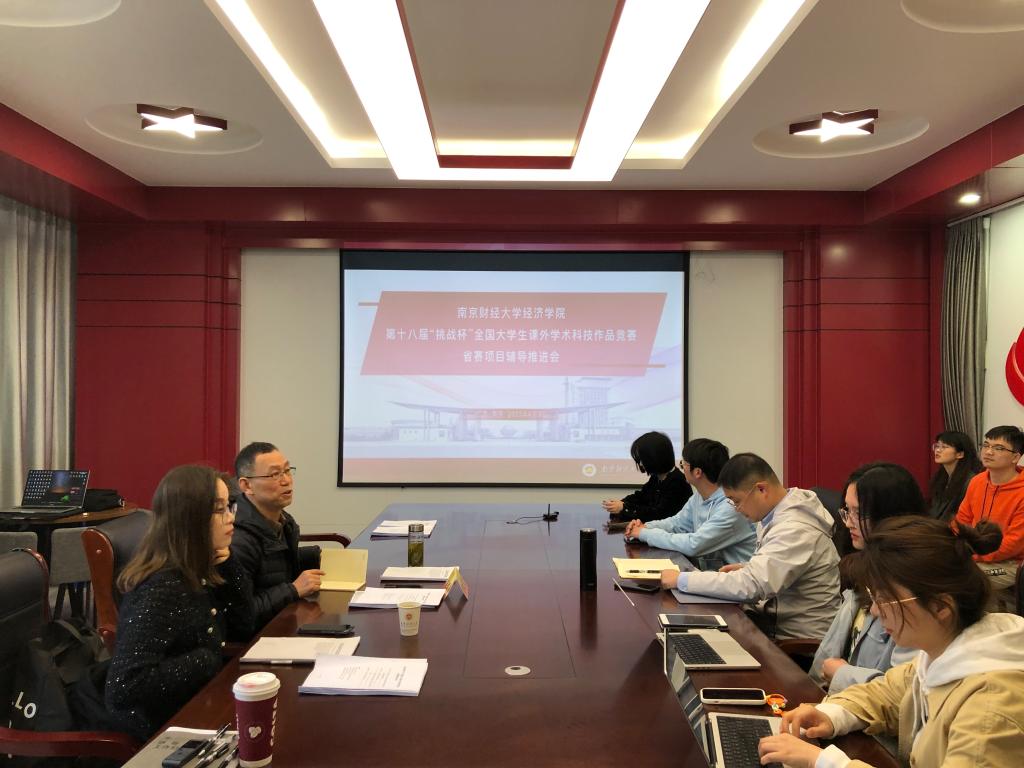 为进一步提升参赛作品质量,备战第十八届“挑战杯”全国大学生课外学术科技作品竞赛省赛,4月3日上午,万象城官网在德经楼329会议室召开“挑战杯”竞赛省赛项目辅导推进会。学院邀请江苏省社会科学院哲学与文化研究所所长胡发贵作培训辅导,学院党委副书记贾亦璞、分团委书记、项目指导教师以及各项目负责人参加了此次推进会。推进会由学院党委副书记贾亦璞主持。