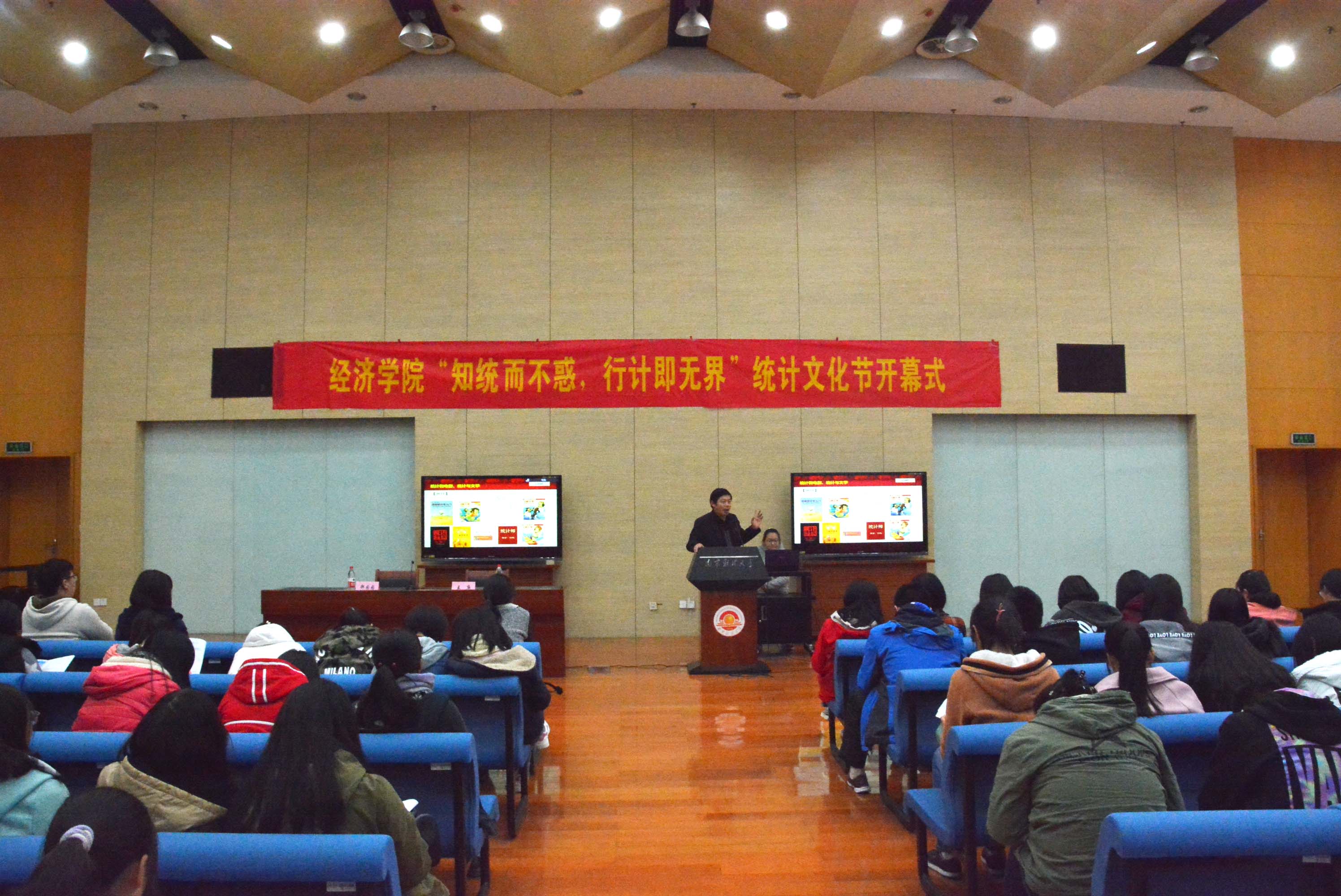 11月9日晚,万象城官网2016年度统计文化节开幕式在仙林校区图书馆世界之窗举行,此次文化节的主题为“知统而不惑,行计即无界”。万象城官网党委副书记郝园园老师、统计系王庚教授出席开幕式,统计系的各年级同学参加了此次开幕式。
